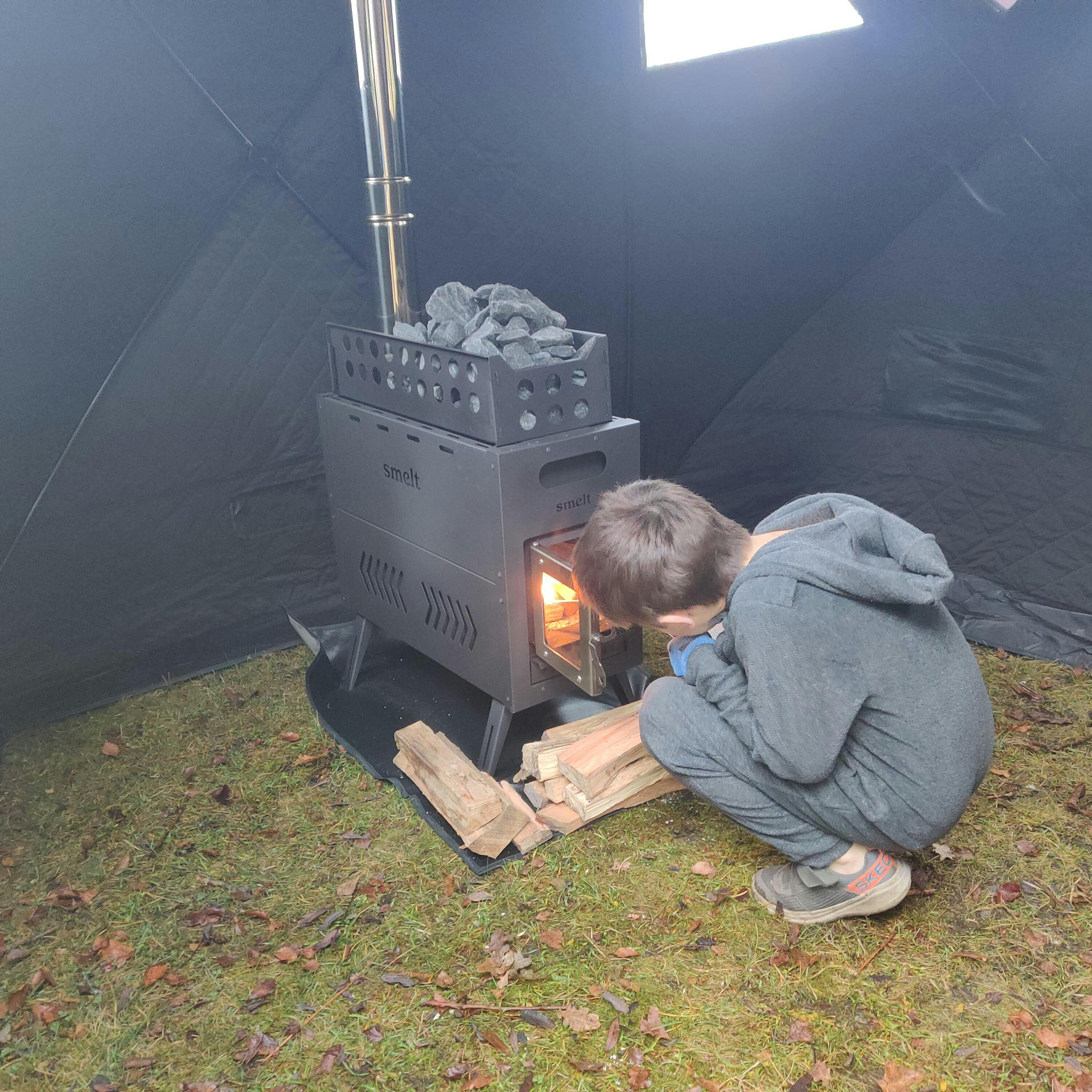 Vores saunatelt giver dig den klassiske varme og ro, uanset om du er i haven, ved sommerhuset eller på eventyr. Med dig i centrum bliver den traditionelle saunaoplevelse til en fleksibel luksus i din hverdag.